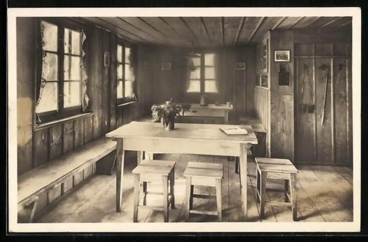 AK Neue Kehlenalphütte, Innenansicht der Berghütte