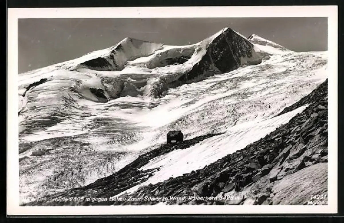 AK Neue Pragerhütte, Berghütte gegen Hohen Zaun, Schwarze Wand und Rainerhorn