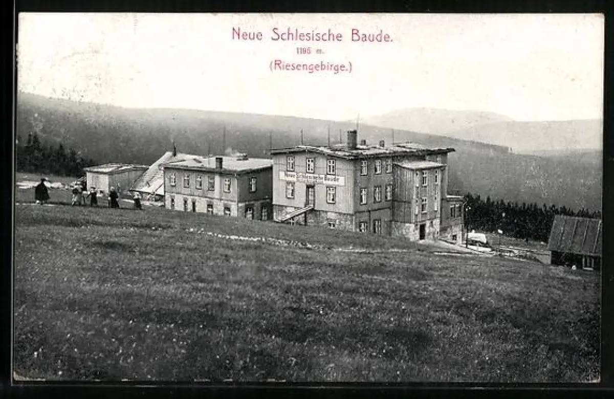 AK Neue Schlesische Baude, Blick den Hang hinab