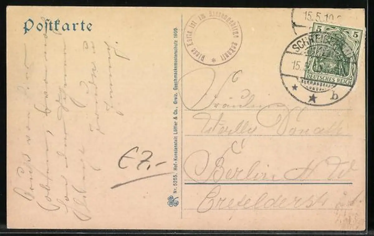 alte Ansichtskarte, gelaufen 1910, guter Zustand