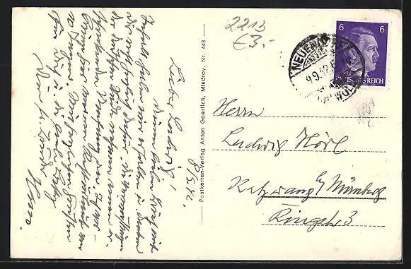 alte Ansichtskarte, gelaufen 1942, Stempelspur, guter Zustand