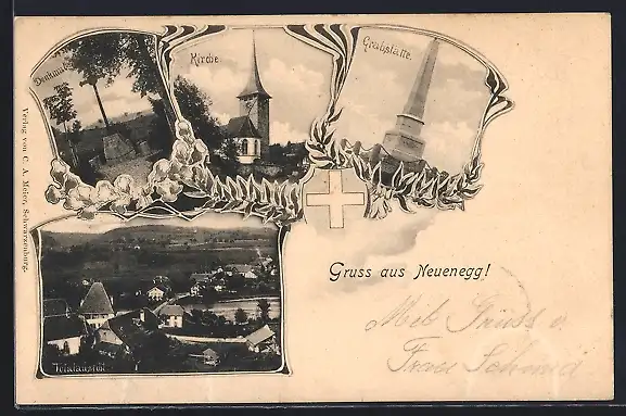 AK Neuenegg, Denkmal, Kirche, Grabstätte, Ortsansicht