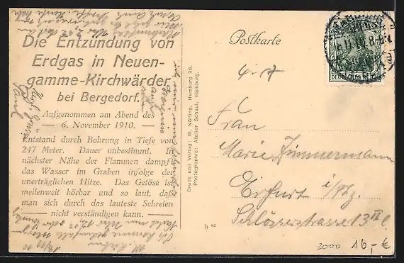 AK Neuengamme, Die Entzündung von Erdgas 1910, Explosion