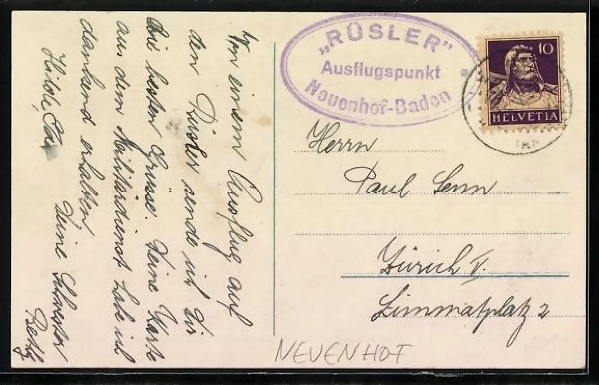 AK Neuenhof /Baden, Gasthaus Rüsler, Bes. Osw. Frey