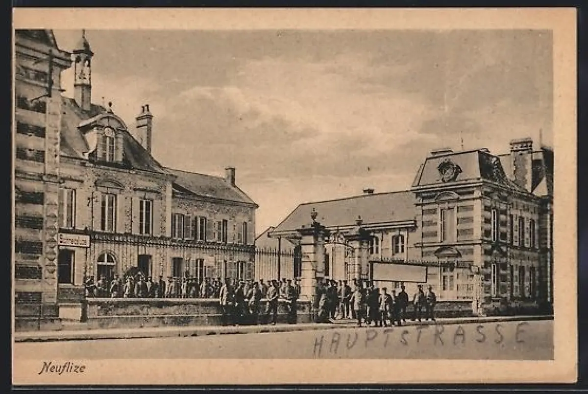 AK Neuflize, Groupe de personnes devant un bâtiment administratif