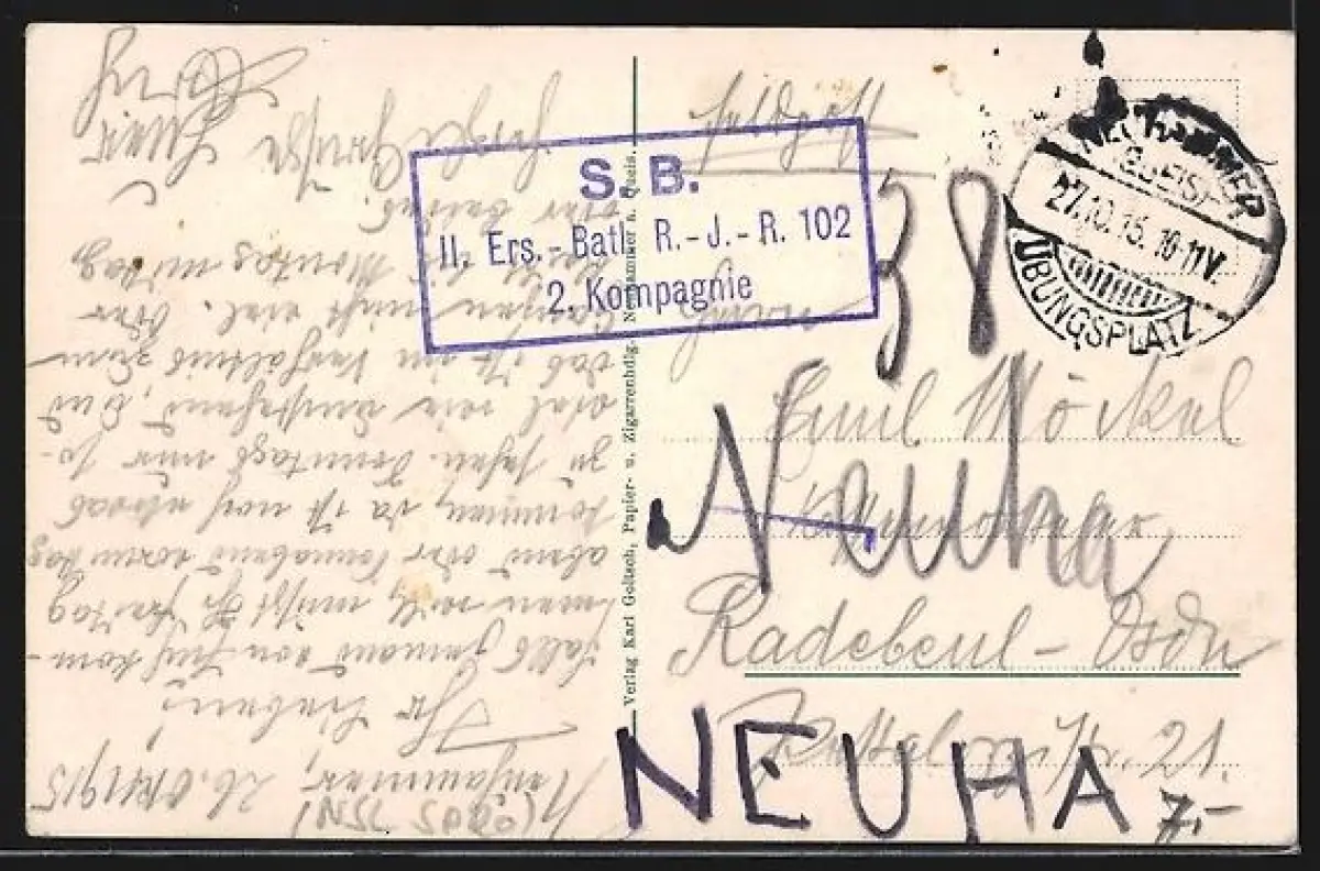 alte Ansichtskarte, gelaufen 1915 als Feldpost, Stempelspur, guter Zustand