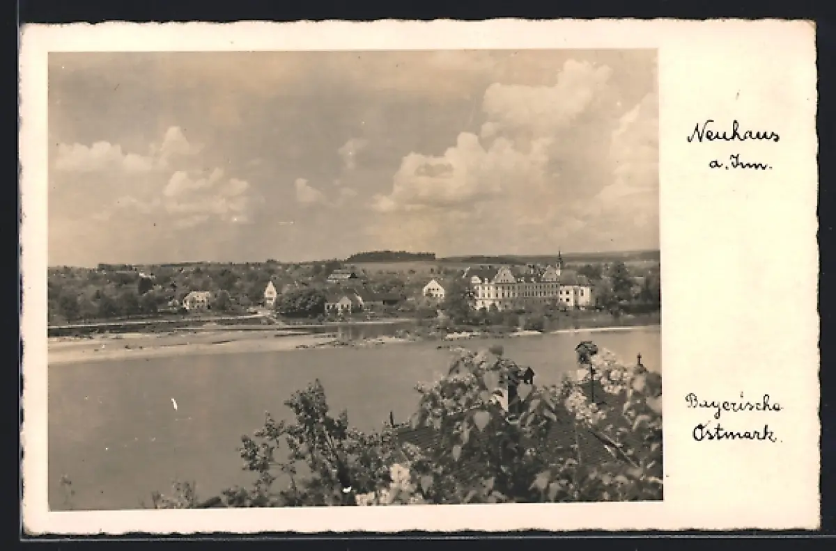 AK Neuhaus a. Inn, Uferpartie mit Kirche