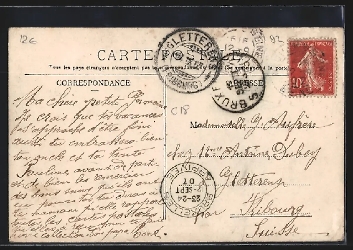alte Ansichtskarte, gelaufen 1907, Stempelspur, guter Zustand