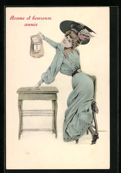 AK Neujahr, Dame reisst Kalenderblatt ab