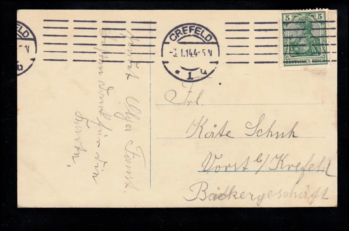 AK Neujahr: Schornsteinfeger mit Leiter Glocken Beerenzweigen, CREFELD 3.1.1914