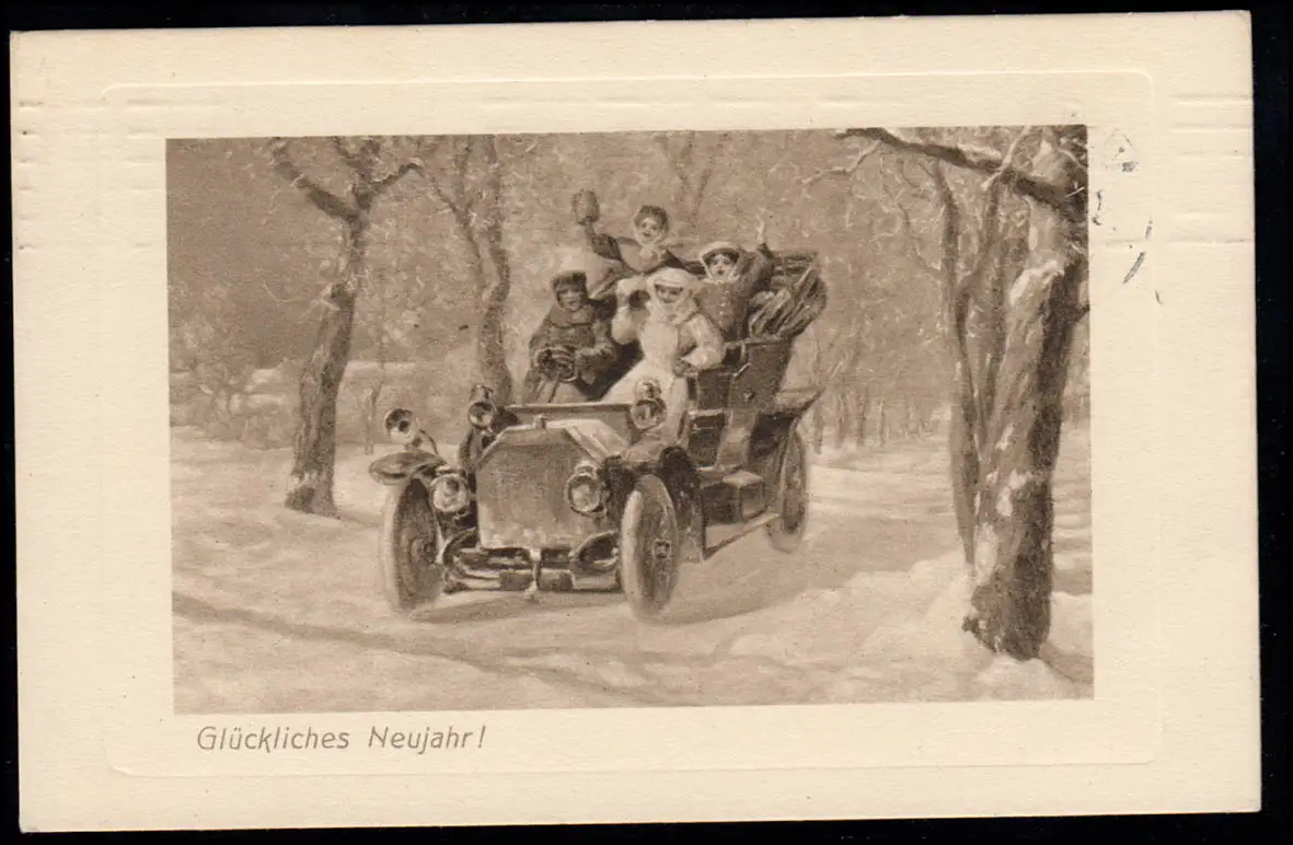 AK Neujahr: Silversterfahrt im offenen Auto, DÜSSELDORF 1.1.1911