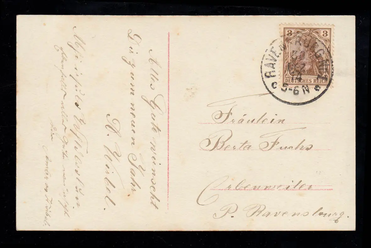AK Neujahr: Zwei Mädchen vor Silvester-Uhr, RAVENSBURG Nr. 1 - 30.12.1914
