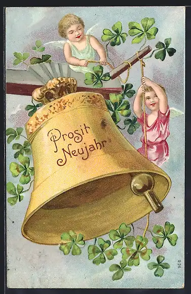 AK Neujahrsengel läuten eine Glocke, Prosit Neujahr