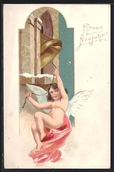 AK Neujahrsengel läutet Kirchenglocken vor Sternenhimmel