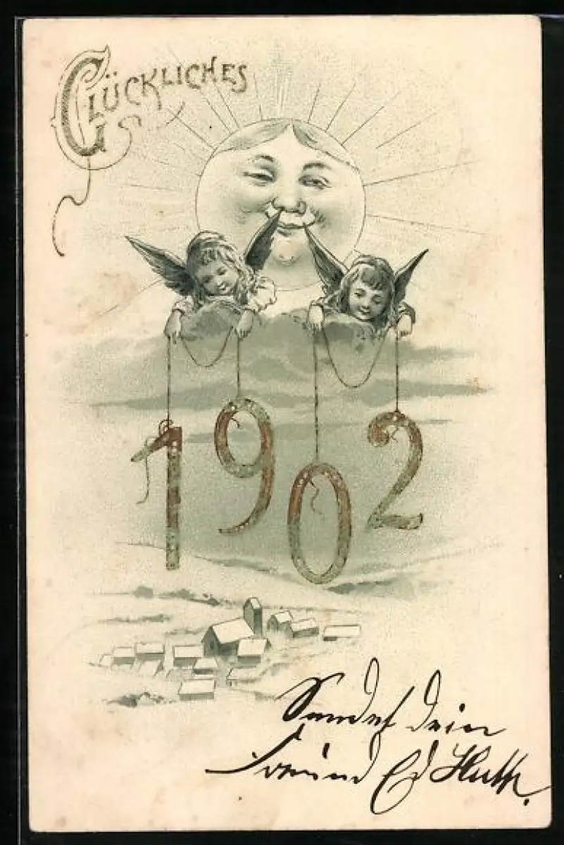 AK Neujahrsengel über den Wolken mit der Jahreszahl 1902