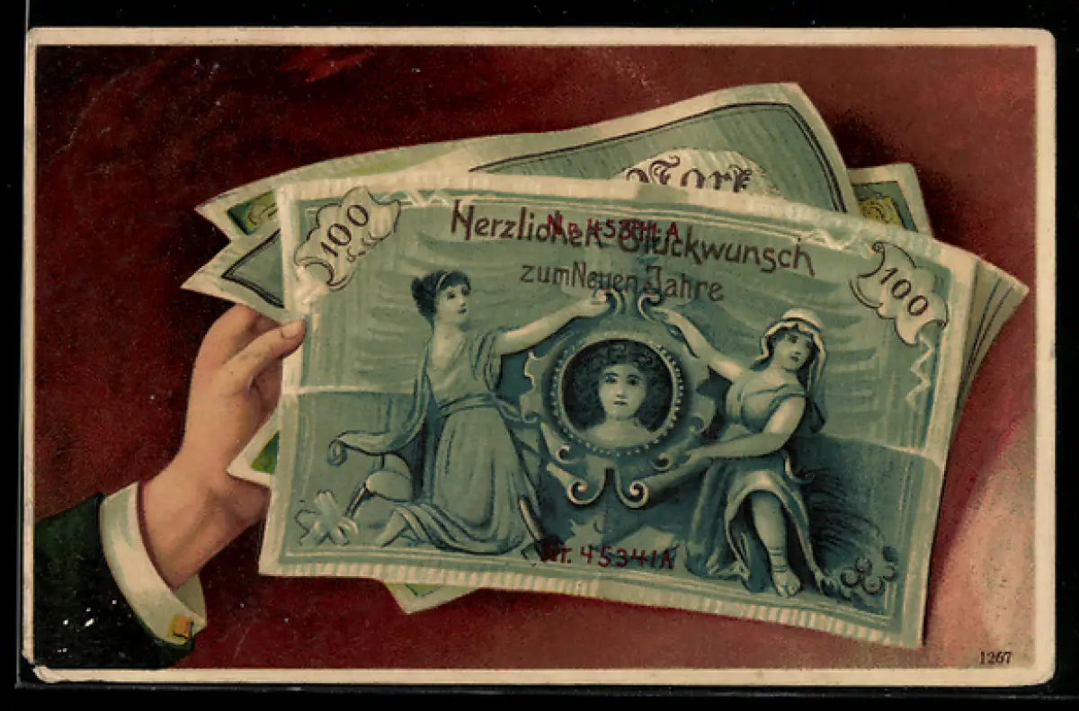 AK Neujahrsgruss, Geldscheine