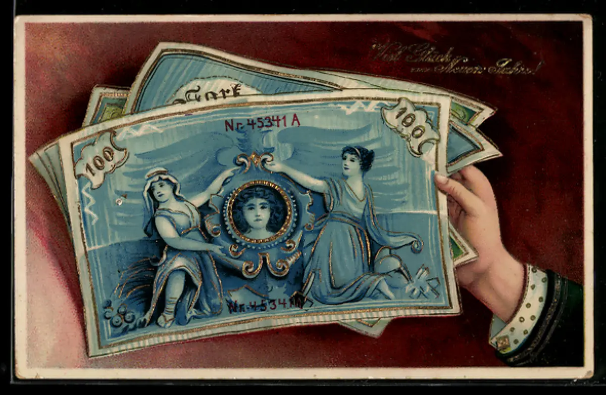 AK Neujahrsgruss, Geldscheine