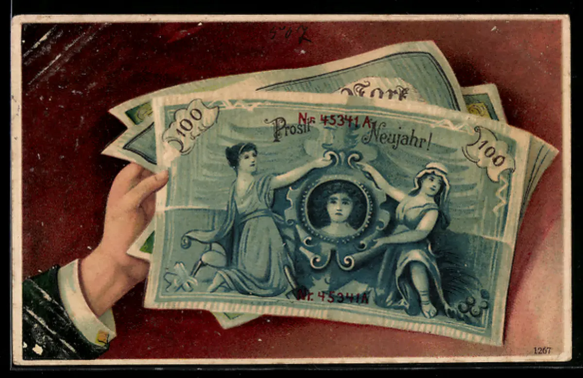 AK Neujahrsgruss, Geldscheine