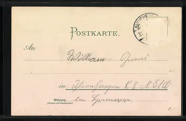 alte Ansichtskarte, gelaufen, Briefmarke entfernt, rückseitig Oberflächenschaden, guter Zustand