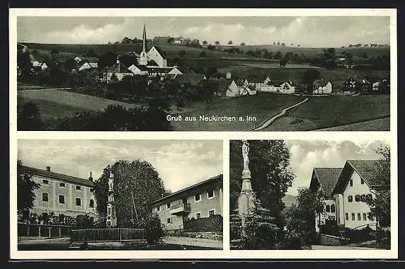 AK Neukirchen / Inn, Denkmal, Ortspanorama mit Kirche