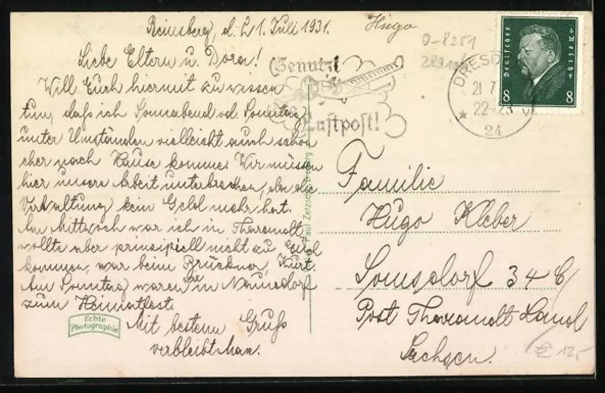 alte Ansichtskarte, gelaufen 1931, guter Zustand