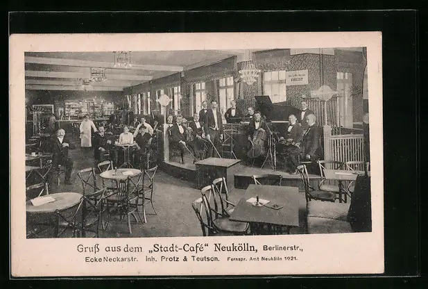 AK Neukölln, Stadt-Café in der Berlinerstrasse, Ecke Neckarstrasse