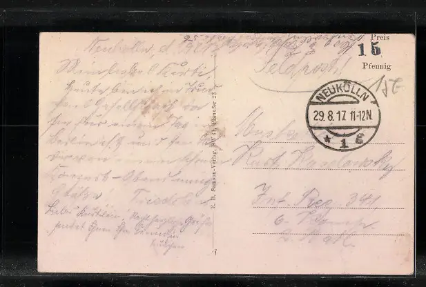 alte Ansichtskarte, gelaufen 1917 als Feldpost, Bugspur mittig, guter Zustand