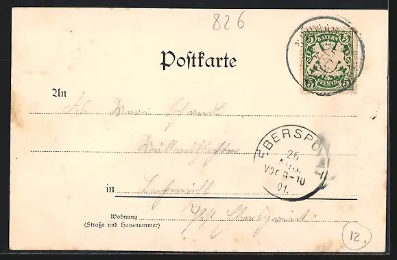 alte Ansichtskarte, gelaufen 1901, guter Zustand