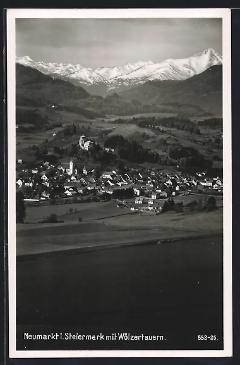 AK Neumarkt i. Steiermark, Ortsansicht vom Berghang mit Wölzertauern