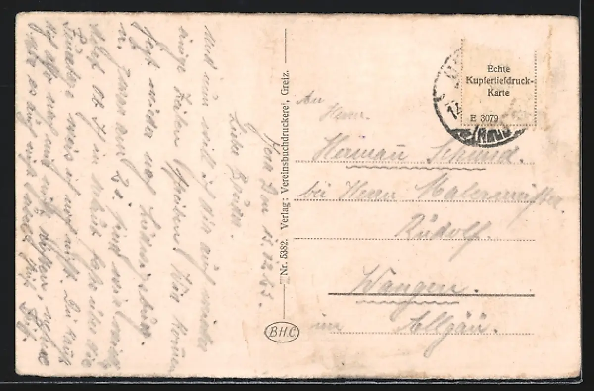 alte Ansichtskarte, gelaufen, Briefmarke entfernt, rückseitig Oberflächenschaden, Eckknick oben re., guter Zustand