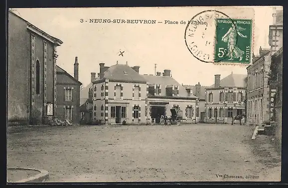AK Neung-sur-Beuvron, Place de l`Église avec calèche et bâtiments historiques