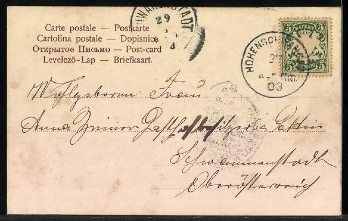 alte Ansichtskarte, gelaufen 1903, Eckknick unten re., Stempelspur, guter Zustand