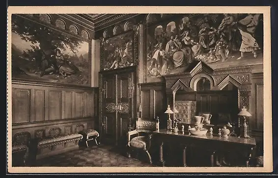 AK Neuschwanstein, Königsschloss-Toilettenzimmer mit Walther von der Vogelweide