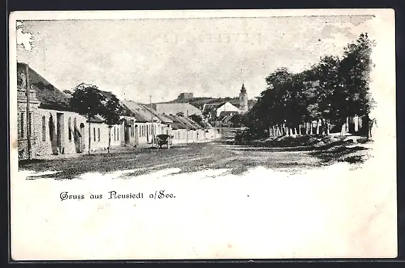 AK Neusiedl a. See, Strassenpartie mit Kirchturm