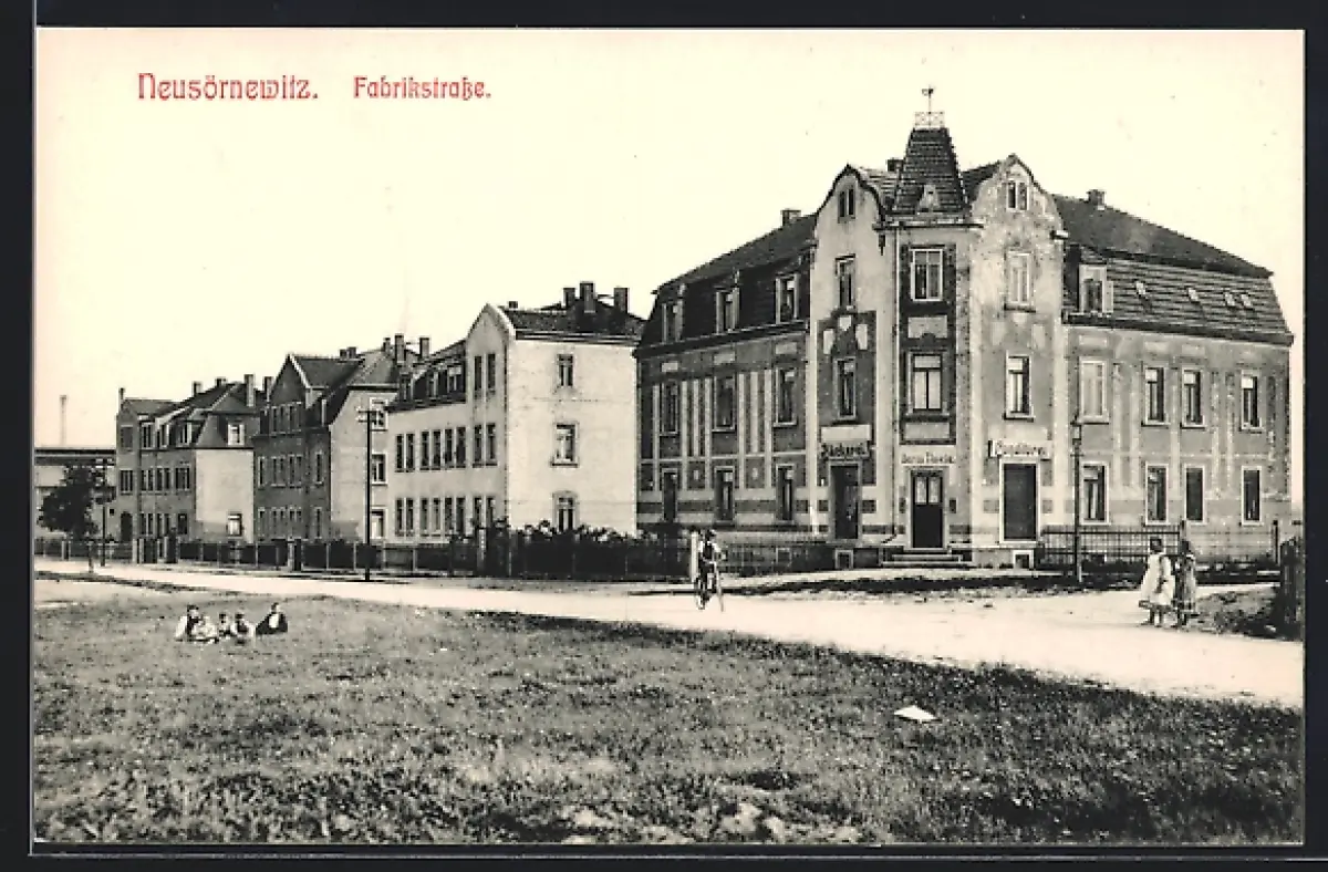 AK Neusörnewitz, Passanten in der Fabrikstrasse