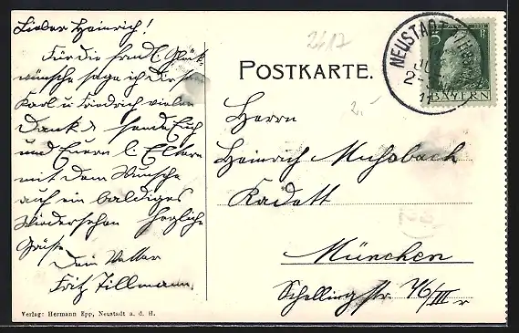alte Ansichtskarte, gelaufen 1911, guter Zustand