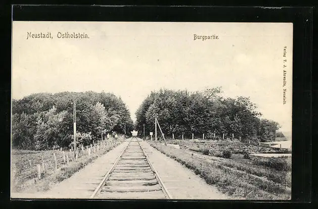 AK Neustadt /Ostholstein, Burgpartie mit Bahnschienen