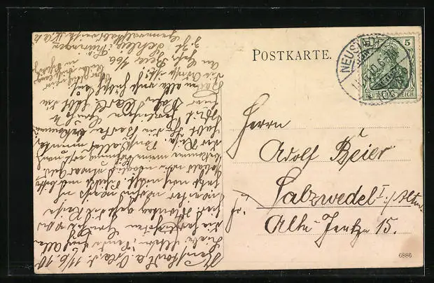 alte Ansichtskarte, gelaufen 1910, Abriebspur li. oben, Stempelspur, guter Zustand