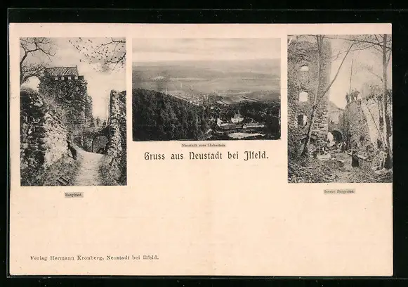 AK Neustadt b. Ilfeld, Burgfried, innere Burgruine, Neustadt vom Hohnstein