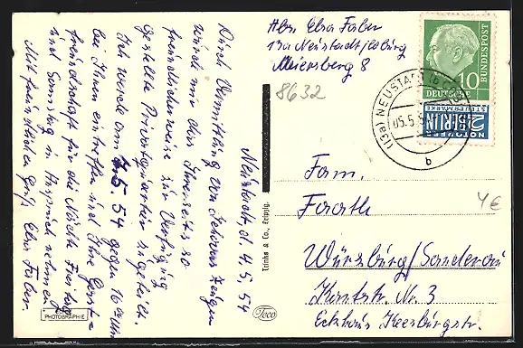 alte Ansichtskarte, gelaufen 1954, guter Zustand