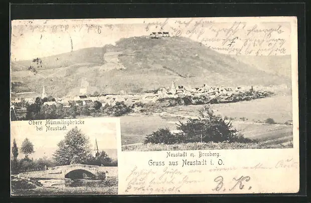 AK Neustadt i. Odw., Obere Mümmlingbrücke, Ortsansicht mimt Breuberg