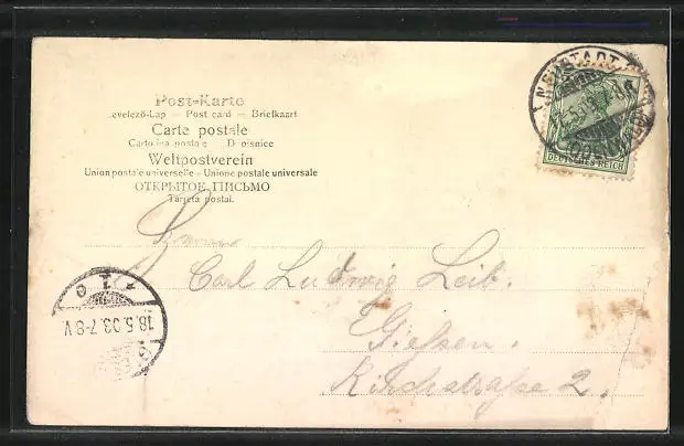alte Ansichtskarte, gelaufen 1903, Eckknick li. unten, guter Zustand