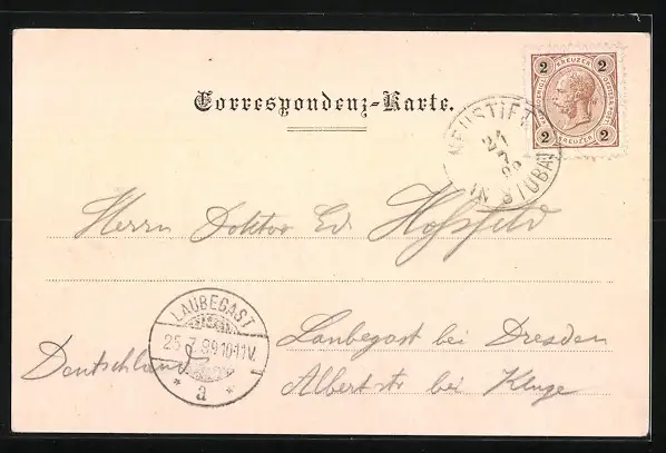 alte Ansichtskarte, gelaufen 1899, guter Zustand