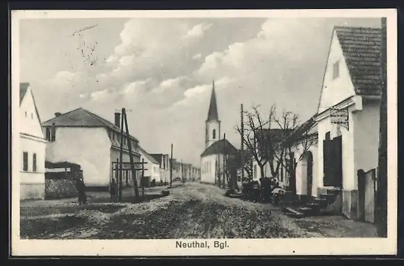 AK Neutal /Bgl., Strassenpartie mit Blick zur Kirche