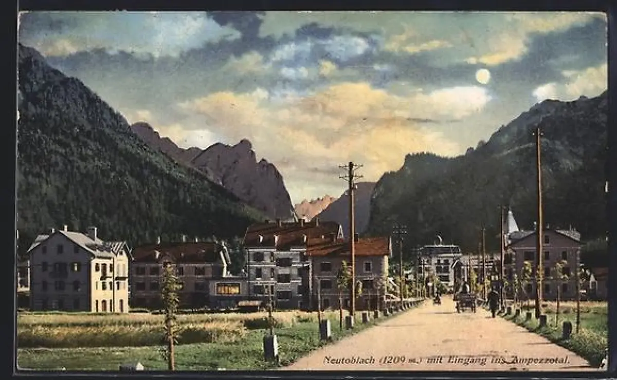 AK Neutoblach, Strassenpartie, Eingang ins Ampezzotal