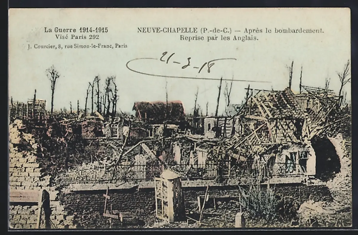 AK Neuve-Chapelle /P.-de-C., La Guerre 1914-1915, Panorama apres le bombardement, Reprise par les Anglais
