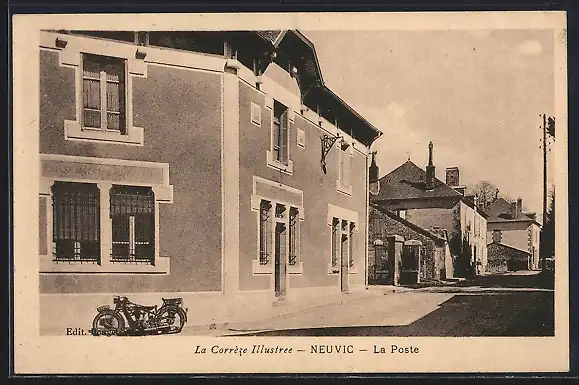 AK Neuvic, La Poste avec une moto devant le bâtiment