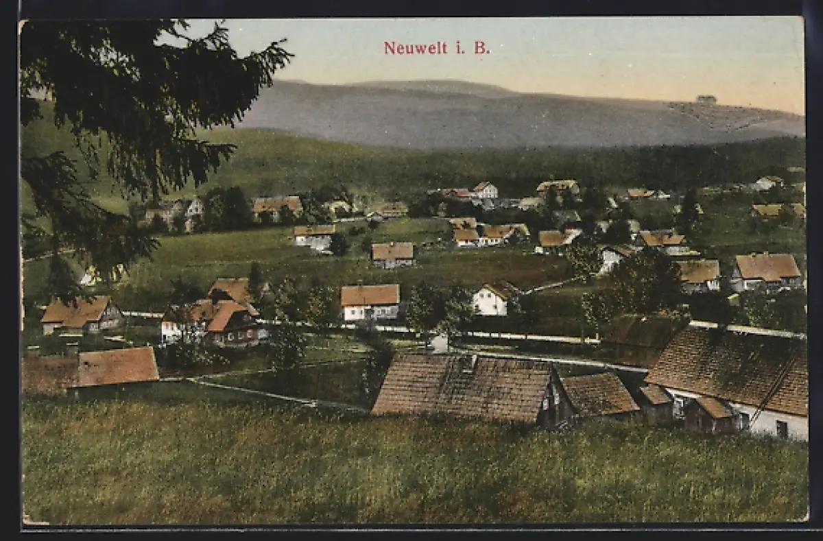AK Neuwelt in Böhmen, Totalansicht aus der Vogelschau