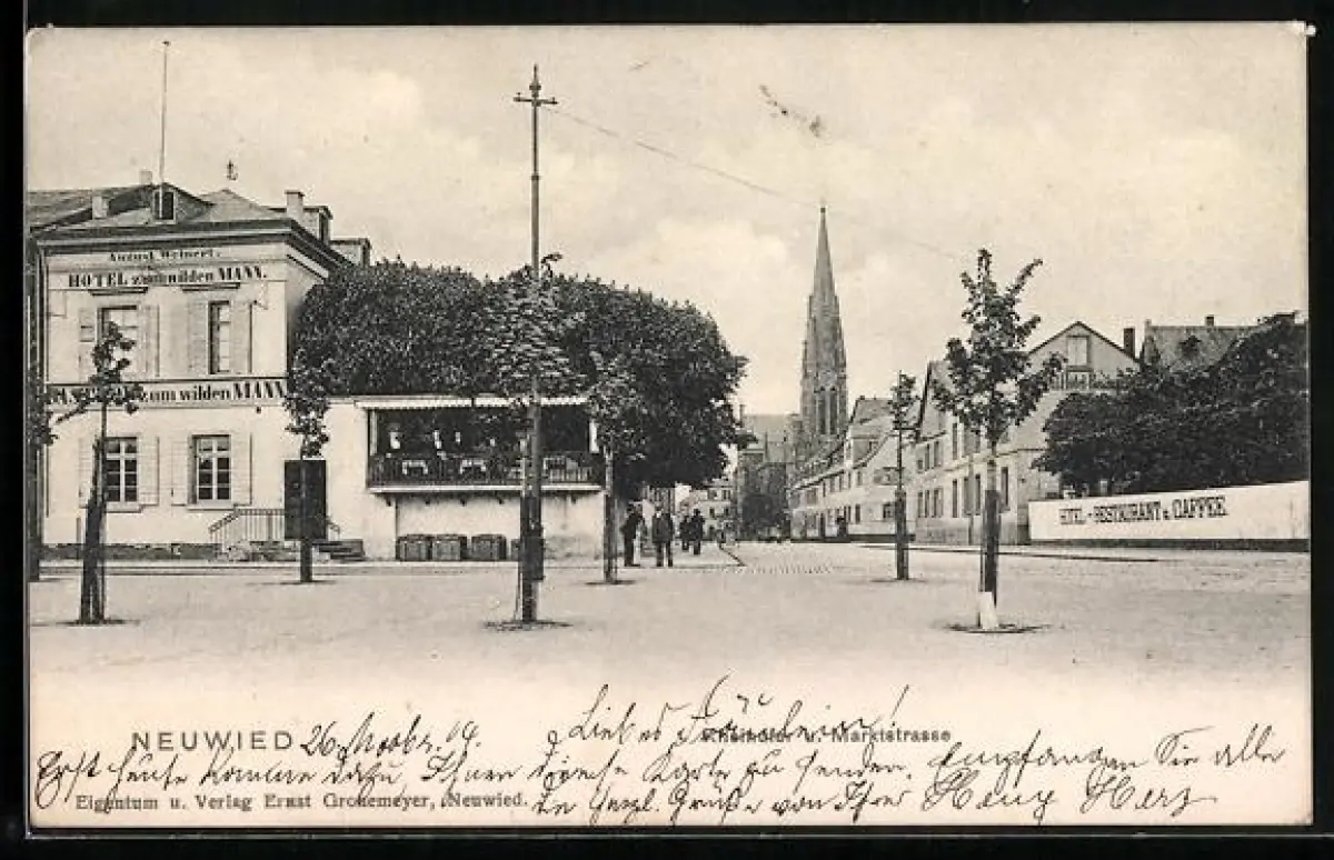 AK Neuwied, Hotel zum wilden Mann, Marktstrasse, Kirche