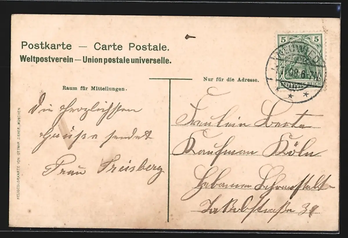alte Ansichtskarte, gelaufen 1908, Stempelspur, guter Zustand